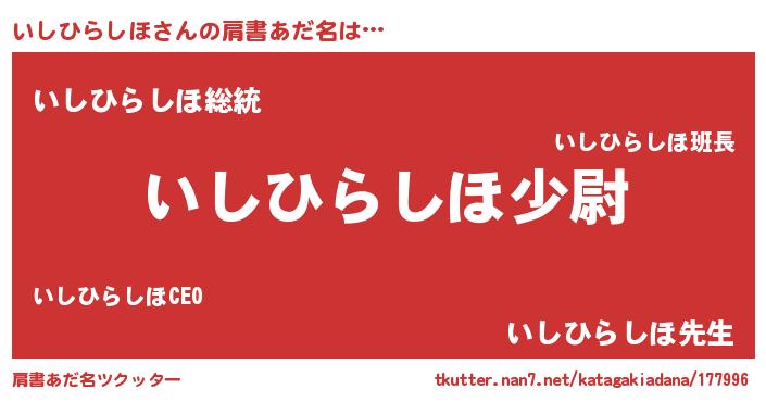 | ヘコむあだ名 | 『いしひらしほ(笑)』『いしぷりん』 |