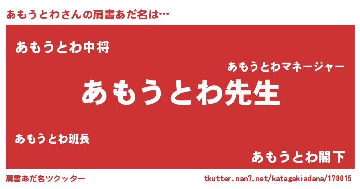 | 意味不明あだ名 | 『永久保存あもうとわ』『自称あもうとわ』 |