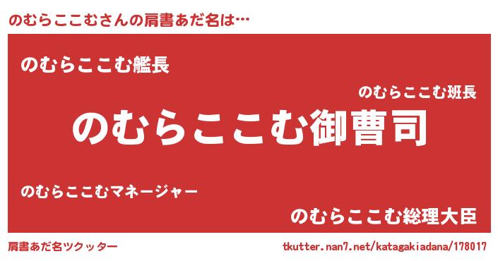| 女子向けラノベタイトル風あだ名 | 『(仮)のむらここむのやんごとなき事情』 |