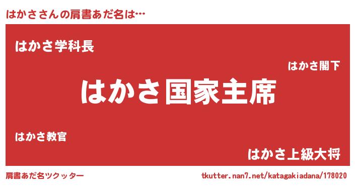| 意味不明あだ名 | 『はかさフォーエバー』『自称はかさ』 |