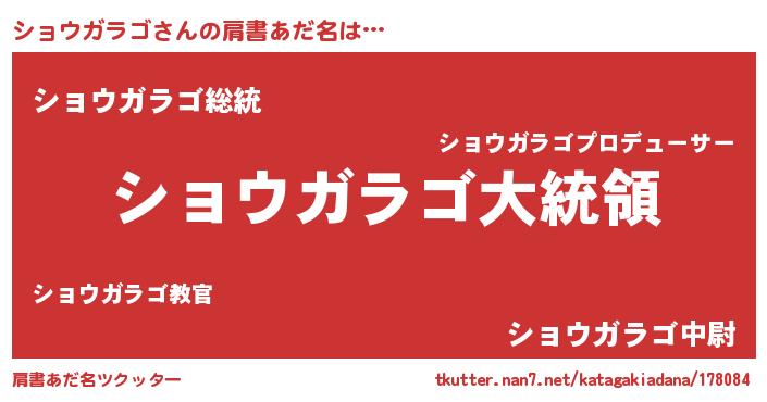 | 意味不明あだ名 | 『ショウガラゴフォーエバー』 |