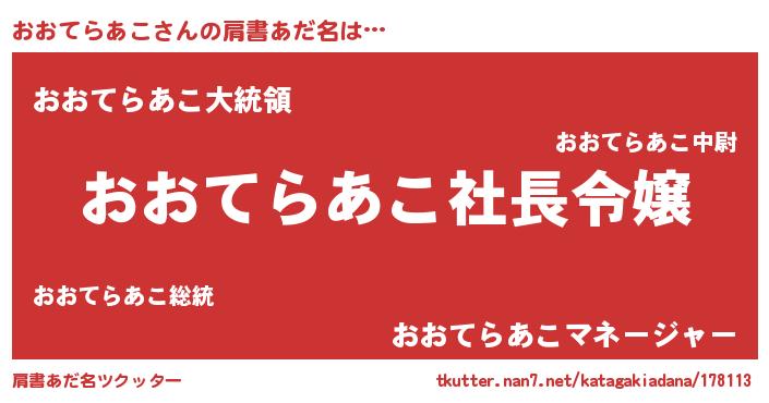 | 男性向けラノベタイトル風あだ名 | 『オオテラアコアートオンライン』 |