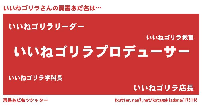 | 男性向けラノベタイトル風あだ名 | 『はたらくいいねゴリラさま!』 |