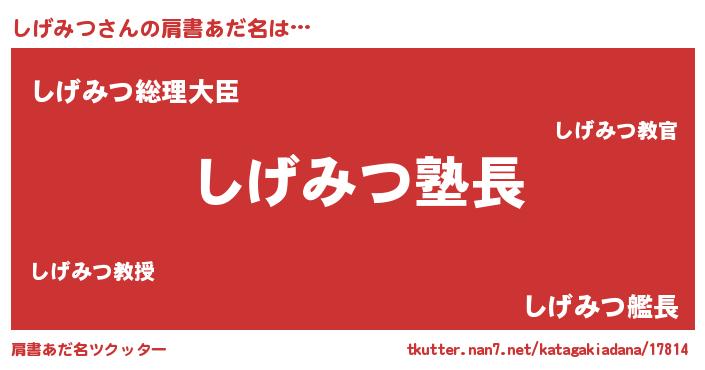| 男性向けラノベタイトル風あだ名 | 『ダンジョンにしげみつを求めるのは間違っているだろうか』 |