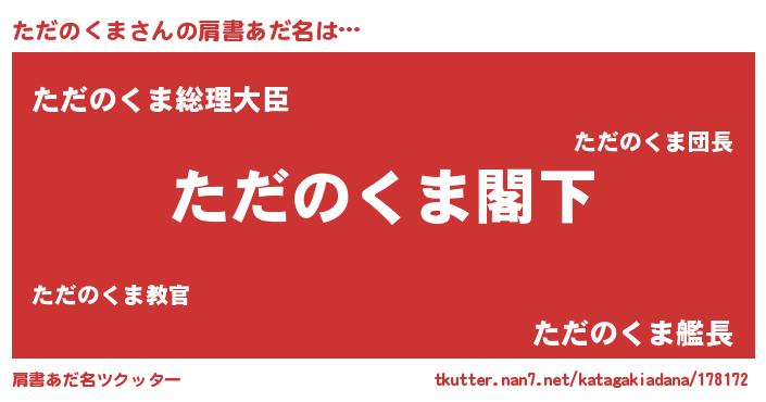 | 意味不明あだ名 | 『自称ただのくま』『ニラ科ただのくま属』 |