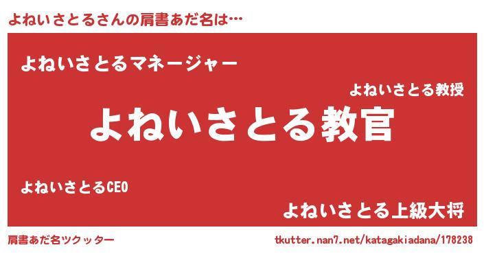 | 女子向けラノベタイトル風あだ名 | 『乙女ゲームの破滅フラグしかない悪役よねいさとるに転生してしまった…』 |