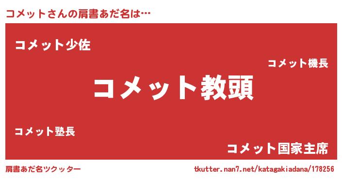 | 意味不明あだ名 | 『永久保存コメット』『ニラ科コメット属』 |