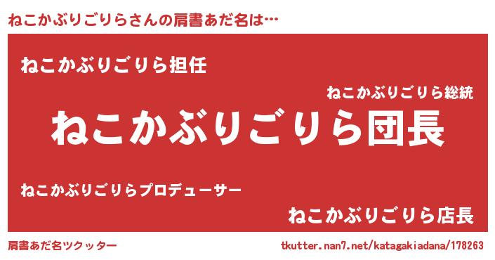 | ヒーロー風カッコイイあだ名 | 『炎刃騎士ネコ』『ネオネコカブリゴリラ』 |