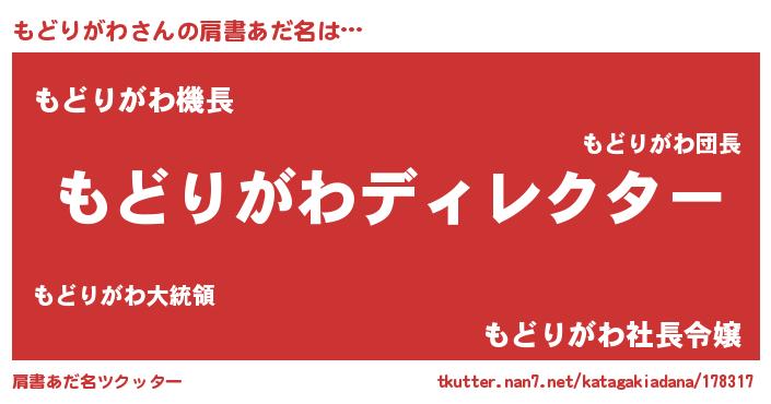 | 男性向けラノベタイトル風あだ名 | 『はたらくもどりがわさま!』 |