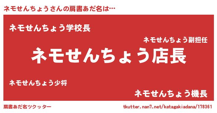 | 男性向けラノベタイトル風あだ名 | 『ネモせんちょうの憂鬱』 |