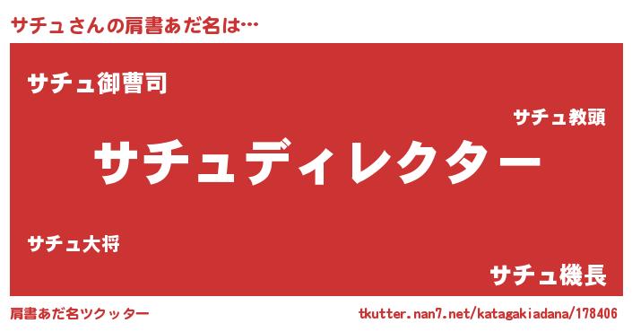 | 欧米人風あだ名 | 『アンジェラ・サチュ』『マイケルサチュ』 |