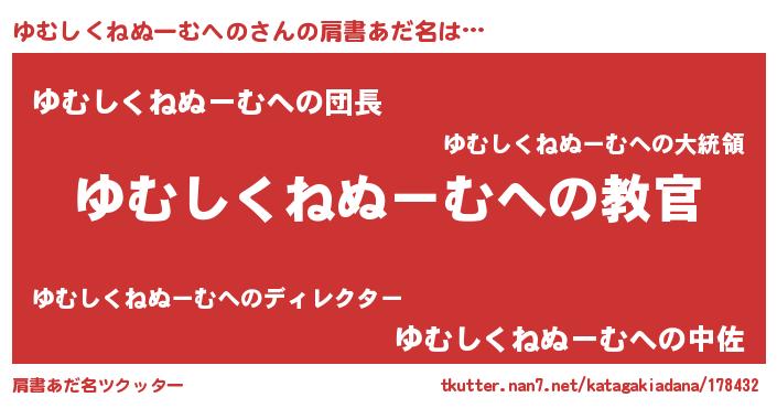 | 意味不明あだ名 | 『住所不定無職ゆむしくねぬーむへの(40歳)』 |