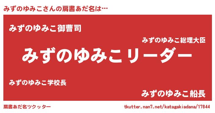 | 男性向けラノベタイトル風あだ名 | 『みずのゆみこの嫁は女の子じゃないと思った?』 |