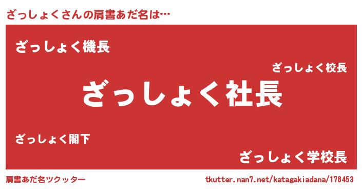 | ヒーロー風カッコイイあだ名 | 『スーパーザッショク』『ネオザッショク』 |