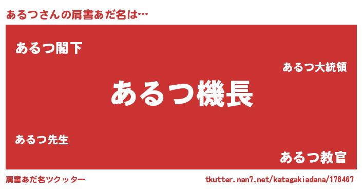 | 欧米人風あだ名 | 『あるつ・ステッグマイヤー』 |