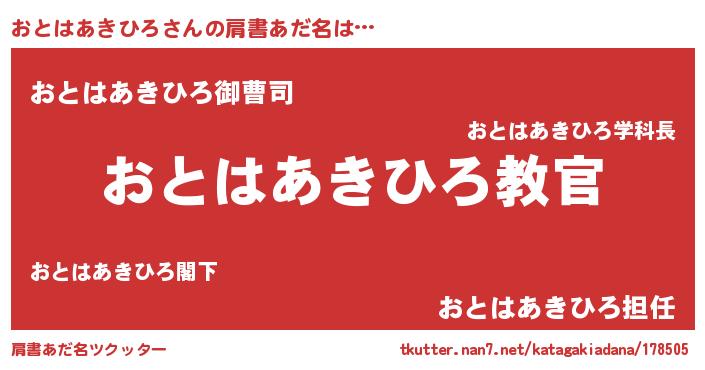 | 意味不明あだ名 | 『住所不定無職おとはあきひろ(3歳)』 |