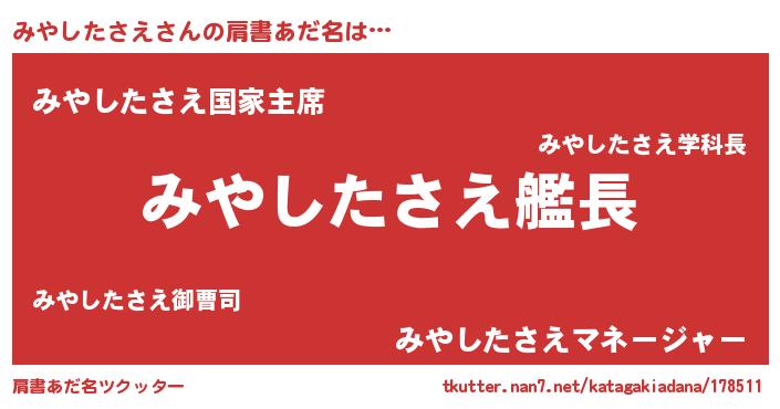 | 男性向けラノベタイトル風あだ名 | 『うちのみやしたさえが世界を掌握している!』 |
