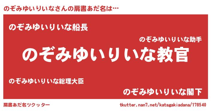 | 男性向けラノベタイトル風あだ名 | 『魔弾の王とのぞみゆいりいな』 |