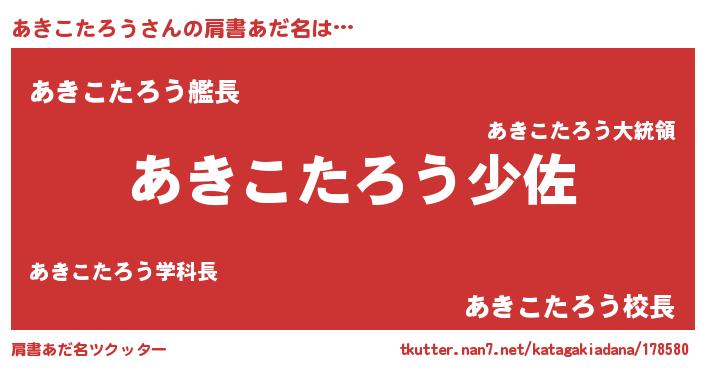 | 男性向けラノベタイトル風あだ名 | 『転生したらあきこたろうだった件』 |
