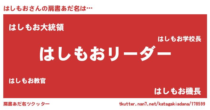 | 意味不明あだ名 | 『とにかく怪しいはしもお』 |