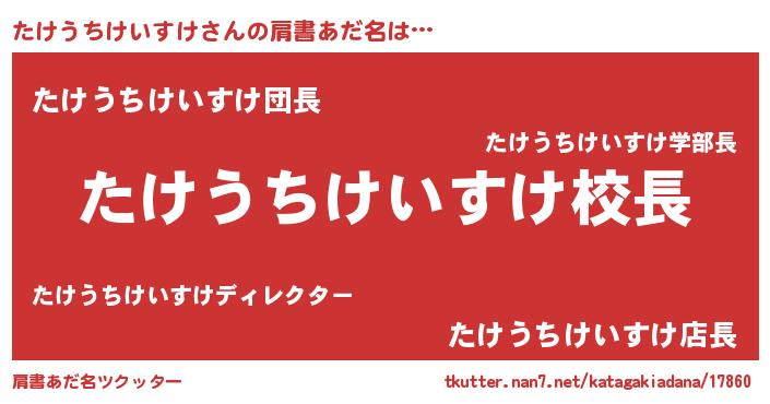 | 女子向けラノベタイトル風あだ名 | 『たけうちけいすけの契約王妃』 |