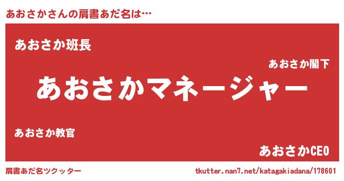 | 男性向けラノベタイトル風あだ名 | 『はたらくあおさかさま!』 |