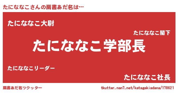 | ヒーロー風カッコイイあだ名 | 『慈愛の使者たにななこ』『暗黒騎士タニ』 |