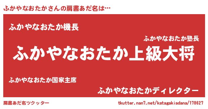 | 伝説のあだ名 | 『覚醒した遊び人ふかやなおたか』 |