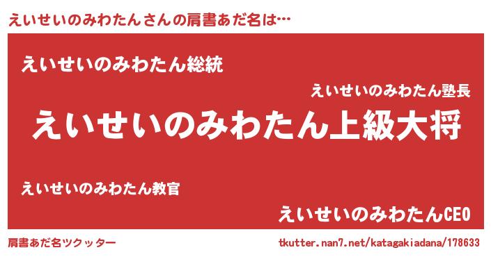 | 欧米人風あだ名 | 『トリンドルえいせいのみわたん』 |