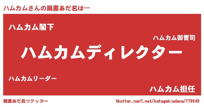 | 男性向けラノベタイトル風あだ名 | 『はたらくハムカムさま!』 |