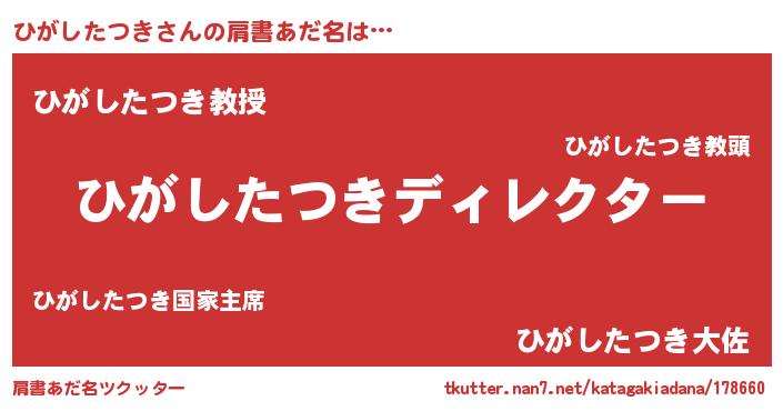 | 男性向けラノベタイトル風あだ名 | 『はたらくひがしたつきさま!』 |