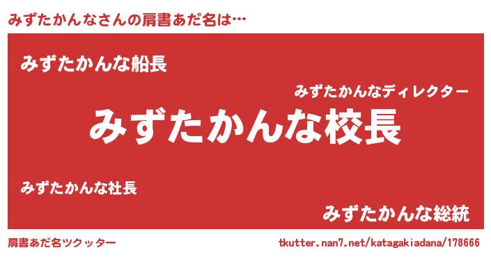 | ヒーロー風カッコイイあだ名 | 『ネオミズタカンナ』『仮面ミズダー』 |