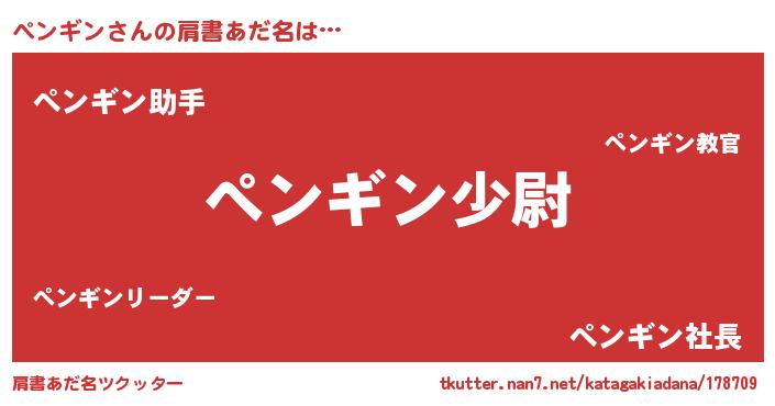 | 男性向けラノベタイトル風あだ名 | 『転生したらぺンギンだった件』 |