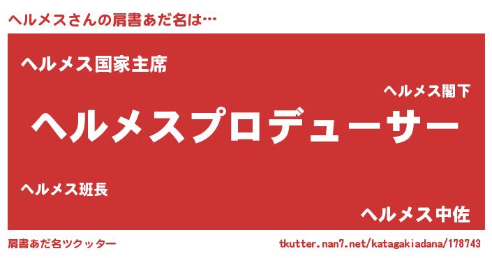 | 意味不明あだ名 | 『ヘルメスフォーエバー』『自称ヘルメス』 |