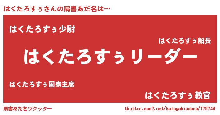 | 意味不明あだ名 | 『とにかく怪しいはくたろすぅ』 |