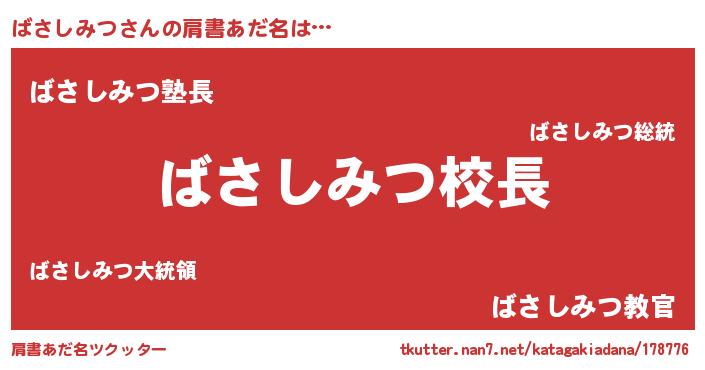 | 意味不明あだ名 | 『永久保存ばさしみつ』『自称ばさしみつ』 |