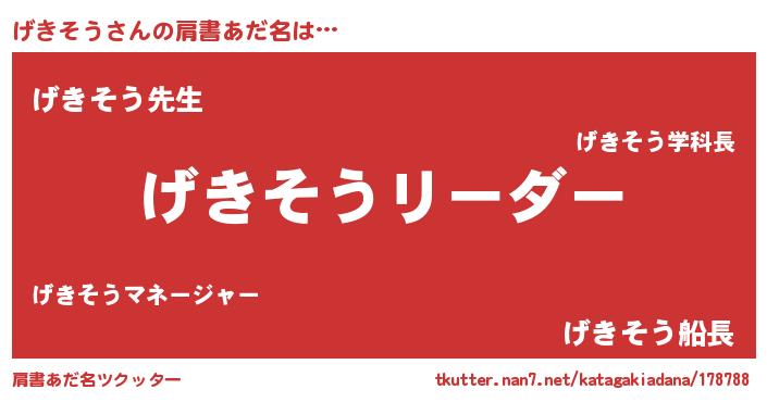 | 意味不明あだ名 | 『とにかく怪しいげきそう』 |