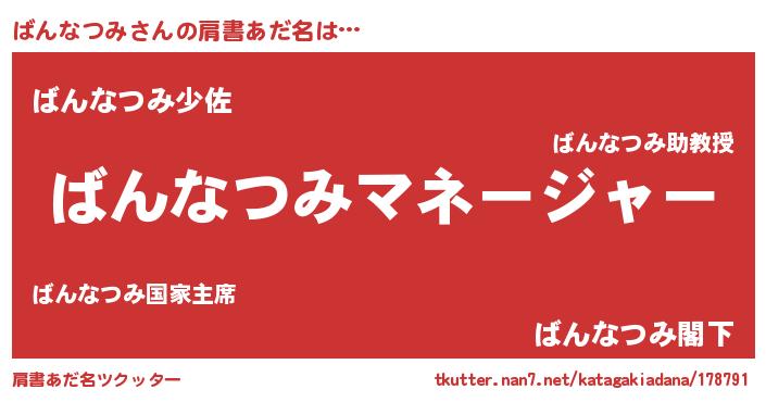 | 恥ずかしいあだ名 | 『バンナツミデラックス』『ばんっちょ』 |