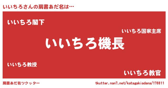 | 男性向けラノベタイトル風あだ名 | 『うちのいいちろが世界を掌握している!』 |