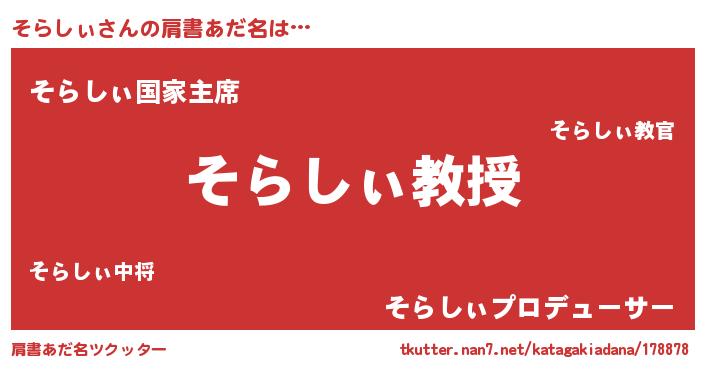 | ヒーロー風カッコイイあだ名 | 『慈愛の使者そらしぃ』『仮面ソラダー』 |