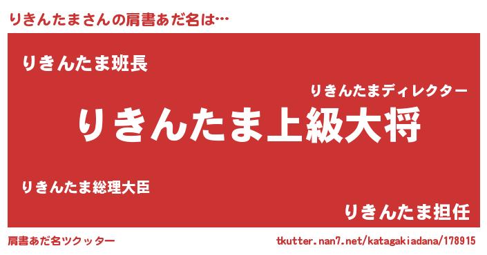 | 男性向けラノベタイトル風あだ名 | 『りきんたま~年齢イコール彼女いない歴の魔法使い~』 |