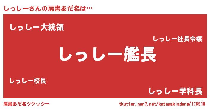 | ヒーロー風カッコイイあだ名 | 『ウルトラしっしーマン』『ネオシッシー』 |