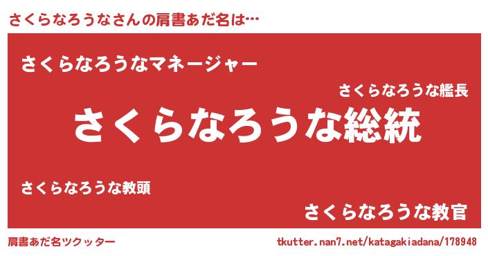 | ヘコむあだ名 | 『さくらなろうな(爆)』『さくを』 |