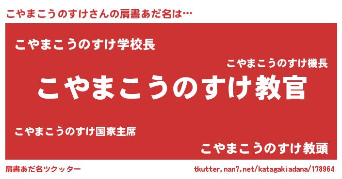 | 意味不明あだ名 | 『住所不定無職こやまこうのすけ(68歳)』 |