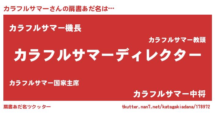 | 胡散臭い通販商品みたいなあだ名 | 『来世でも幸せになれる健康食品…その名も「カラフルサマー」』 |