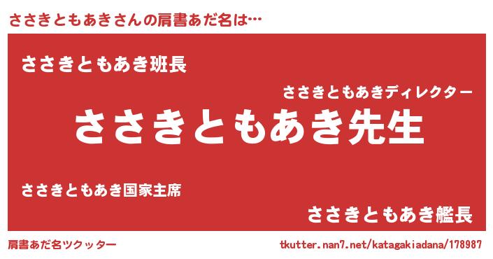 | ヘコむあだ名 | 『ささきともあき(笑)』『ささっ子』 |