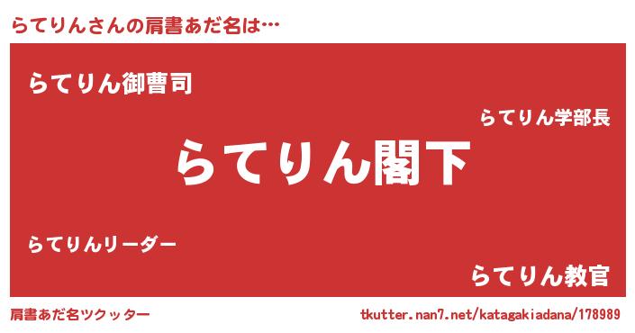 | 女子向けラノベタイトル風あだ名 | 『らてりんなんてお断りですっ。』 |