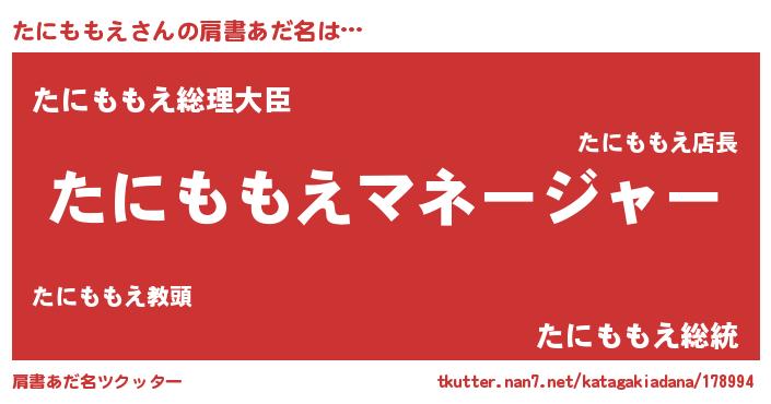 | 欧米人風あだ名 | 『アンジェラ・たにももえ』 |