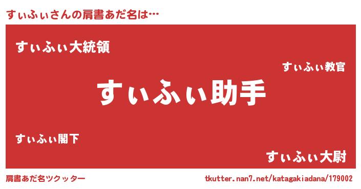 | ヒーロー風カッコイイあだ名 | 『正義の使者すぃふぃ』『仮面スィダー』 |
