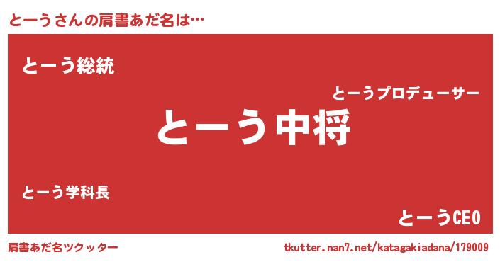 | ヒーロー風カッコイイあだ名 | 『最強戦士トーウ』『スーパートーウ』 |